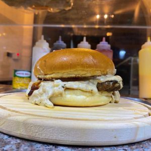 beef-onion-mushroom sauce-burger sauce-bbq sauce