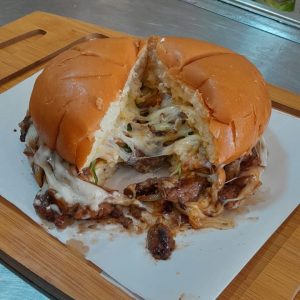 beef-onion-mushroom-bbq sauce-mozzarella-special sauce