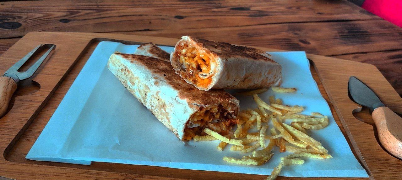 chicken-pepper-onion-lettuce-mozzarella-corn-avocado sauce