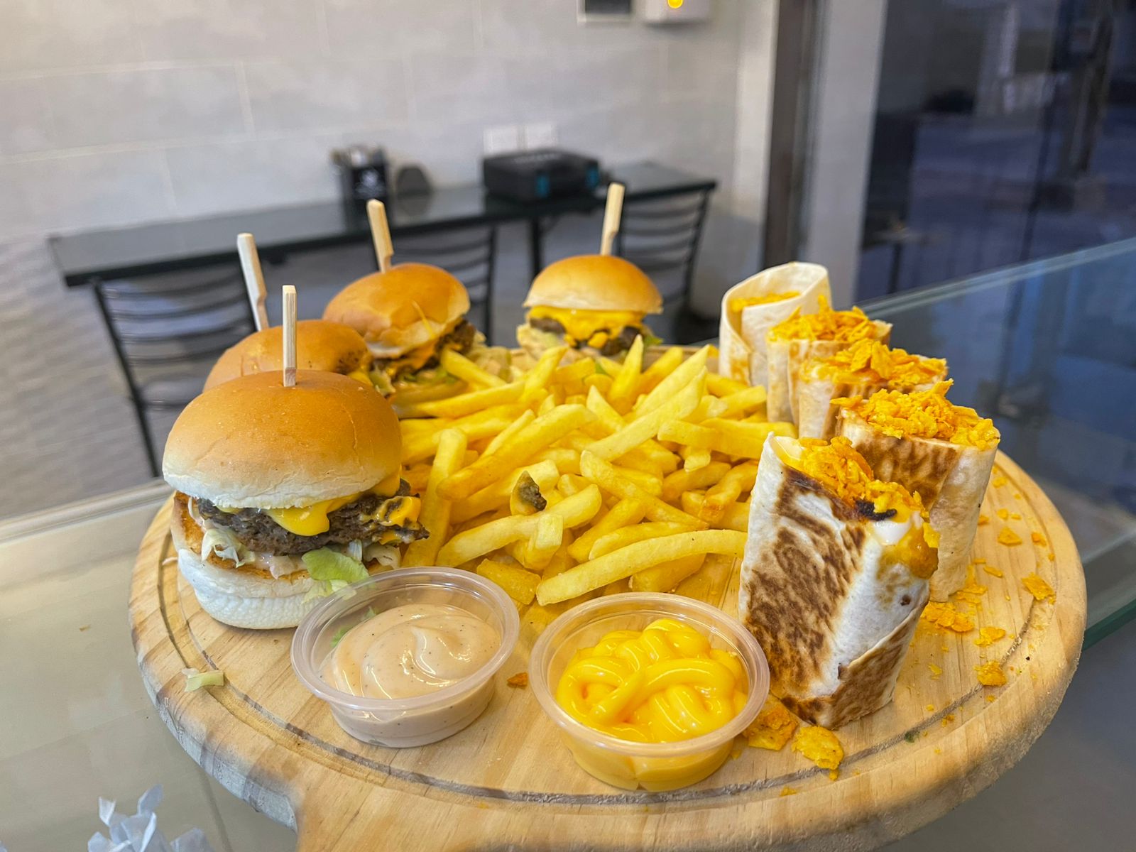 4 mini cheese burger- 5 pcs nachos- fries-sauce