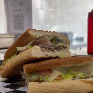 beef-lettuce-tomato-cheese-mozzarella stick-onion ring-baked turkey-sauce